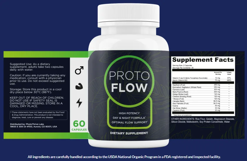 Protoflow™ Protoflow is an excellent natural supplement made to aid in bladder health and comfort and overall male health. As men age, ensuring an active prostate is increasingly essential, especially when faced with frequent urination and sleep disturbances. sleep, and less confidence. Protoflow is made up of an assortment of herbs, vitamins and plant-based substances that are designed to help promote an optimal prostate function, and increase the quality of life.